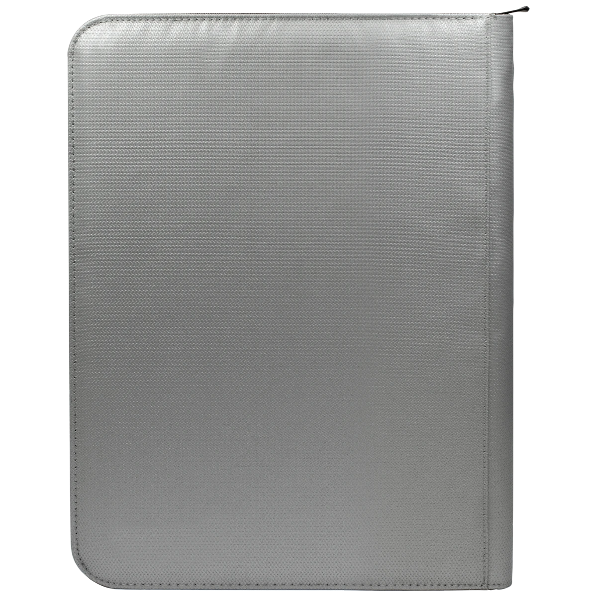 - 9-Pocket Zippered PRO-Binder with silver padded cover made with fire-resistant materials