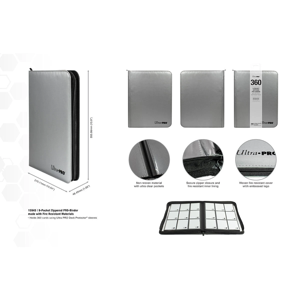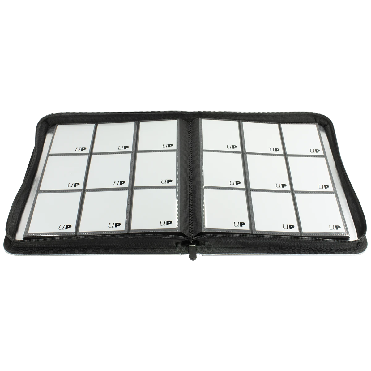 Ultra PRO 9-Pocket Zippered PRO-Binders are designed for collecting and organizing your favorite trading cards. Each binder features a padded exterior cover made with fire resistant materials with matching zipper closure and pull tab. After unzipping the binder, you’ll find twenty 9-pocket pages sized for standard trading cards in side-loading pockets, allowing you to store up to 360 cards in Deck Protector sleeves. Pages feature a low-friction black backing, creating a separation between the front and back pockets as well as providing cards a classic framed look, and are made with acid-free, non-PVC materials to ensure your cards are protected and preserved.