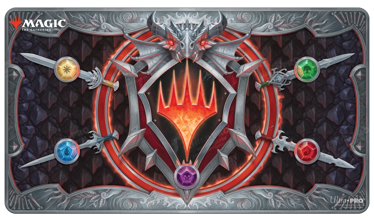 Get ready for an adventure with this officially licensed Magic: The Gathering Stitched Edge Playmat, featuring the Stylized Planeswalker Symbol from the Adventures in the Forgotten Realms release. Made with a soft fabric top to reduce damage to cards during play and a non-slip rubber backing to keep the playmat from shifting during use, these playmats enhance the gameplay experience and protect your cards during gameplay. The stitched edges offer an added premium feel. With dimensions of approximately 24″ x 13.5″, a playmat also makes an excellent oversize mousepad for the home or office.