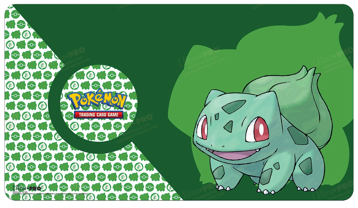 Up your game at your next game night with these official Pokemon Trading Card Game playmat showcasing Bulbasaur in vibrant, full-color printed artwork.