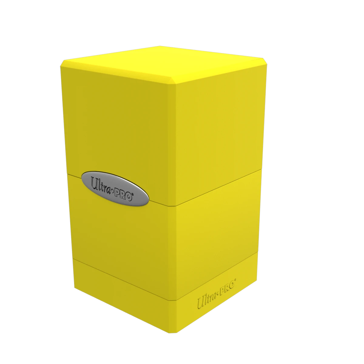 The Classic Satin Tower is Ultra PRO™s best selling deck box! The durable, injection molded plastic shell is designed to store and protect 100+ standard size trading cards in Ultra PRO Deck Protector® sleeves and includes a spacious bottom compartment for dice, coins, or life counters. The unique snap-fit locking mechanism keeps your valuable cards and components securely stored. This Satin Tower features a Classic Satin finish, but Satin Tower is also available with Hi-Gloss and Specialty finishes! Collect them all!