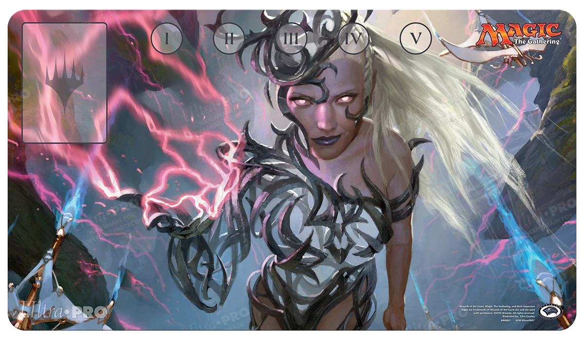 Each Magic Commander 2016 Playmat features both a Command Zone and a place to keep track of just how much damage your Commander has done to each opponent. Playmat with premium fabric top to prevent damage to cards during gameplay. Dimensions are approximately 24″ X 13-1/2″. Rubber backing lets the playmat lay flat and prevents the mat from shifting during use. Artwork featuring Breya, Etherium Shaper.