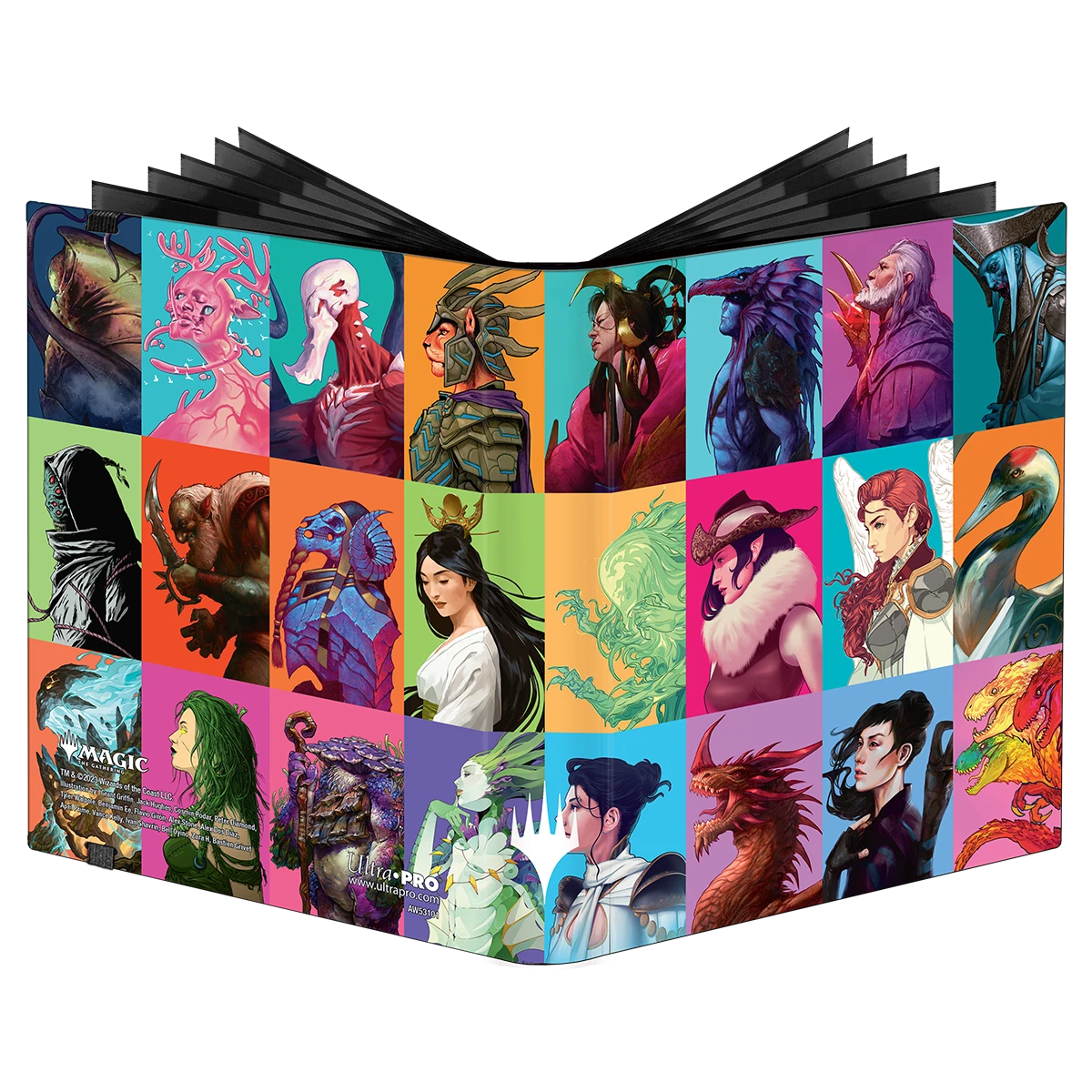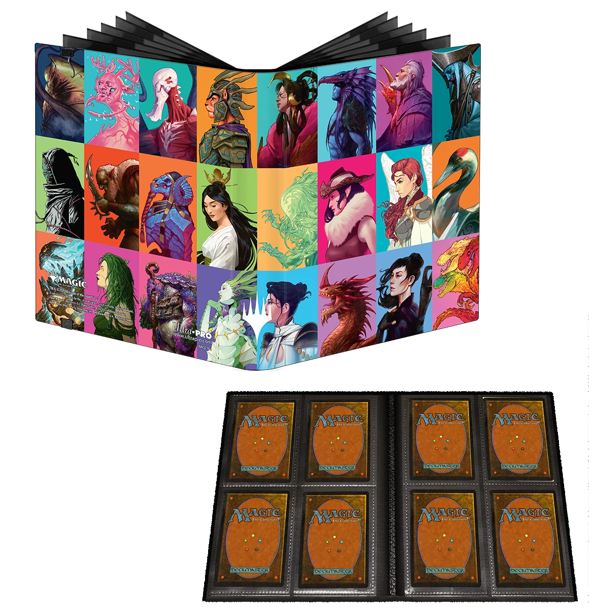 The PRO-Binder for Magic: The Gathering features a vibrant, full-art cover and elastic strap closure. Side-loading pockets and low-friction material help keep cards in place. Up to 160 cards can be stored safely in archival-safe, acid-free, non-PVC pages.