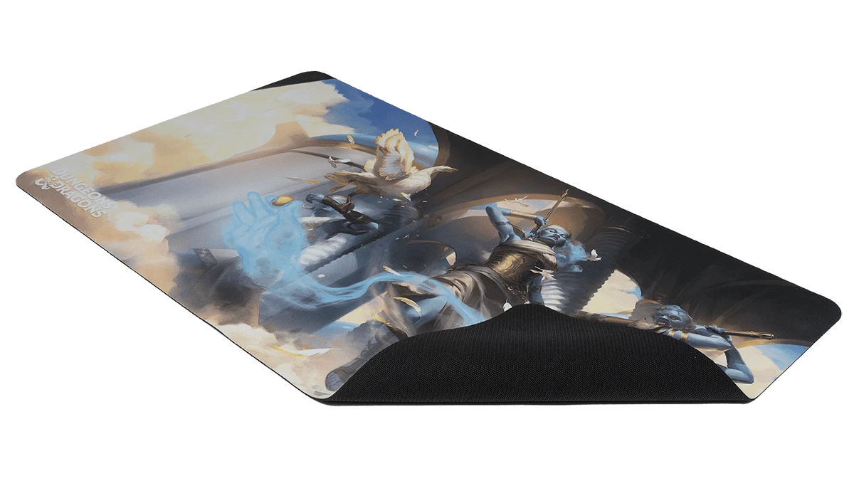 Bring your favorite adventures to the table with the Cover Series Playmats for Dungeons & Dragons. Made with a soft fabric top and rubber backing, not only will your cards, miniatures, or specialty dice be protected, but also the table below when rolling dice. With dimensions of approximately 24 in. x 13.5 in., this playmat is also the perfect decorative oversized mousepad for your home or office. Non-slip rubber backing lets the playmat lay flat and prevents it from shifting during use.
