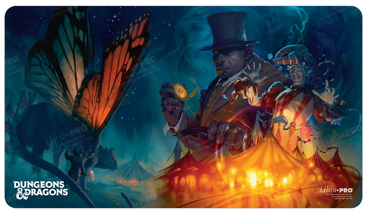 Bring your favorite adventures to the table with the Cover Series Playmats for Dungeons & Dragons featuring The Wile Beyond the Witchlight. Made with a soft fabric top and rubber backing, not only with your cards, miniatures, or specialty dice be protected, but also the table below when rolling dice. With dimensions of approximately 24 in. x 13.5 in., this playmat is also the perfect decorative oversized mouse pad for your home or office. Non-slip rubber backing lets the playmat lay flat and prevents it from shifting during use.