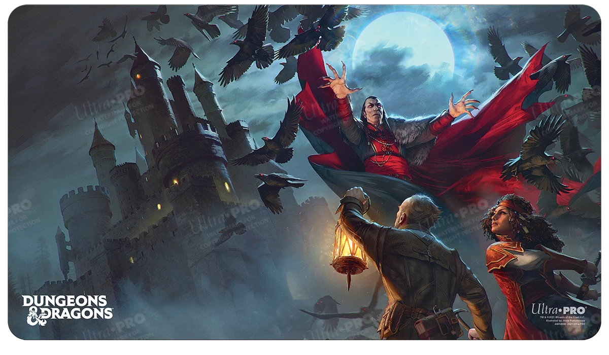 Bring your favorite adventures to the table with the Cover Series Playmats for Dungeons & Dragons featuring Van Richten’s Guide to Ravenloft. Made with a soft fabric top and rubber backing, not only with your cards, miniatures, or specialty dice be protected, but also the table below when rolling dice. With dimensions of approximately 24 in. x 13.5 in., this playmat is also the perfect decorative oversized mouse pad for your home or office. Non-slip rubber backing lets the playmat lay flat and prevents it from shifting during use.