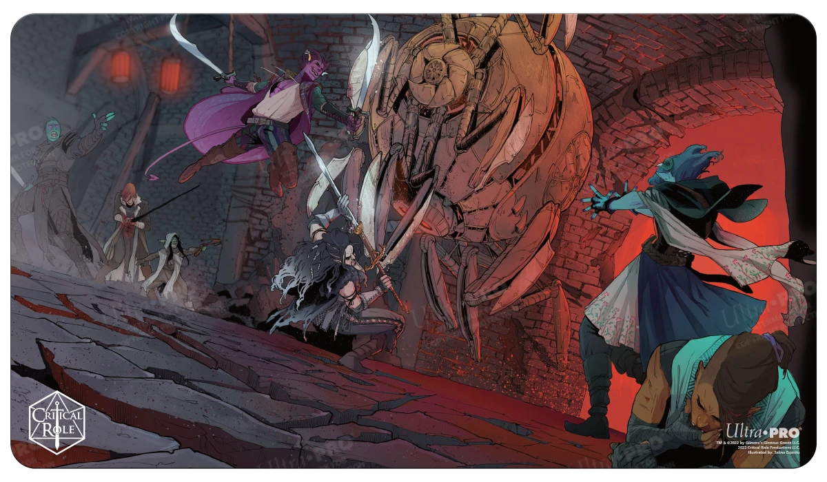 Bring your favorite adventures to the table with the Mighty Nein Playmat for Critical Role. Made with a soft fabric top and rubber backing, not only will your cards, miniatures, or specialty dice be protected, but also the table below when rolling dice. With dimensions of approximately 24 in. x 13.5 in., this playmat is also the perfect decorative oversized mousepad for your home or office. Non-slip rubber backing lets the playmat lay flat and prevents it from shifting during use.