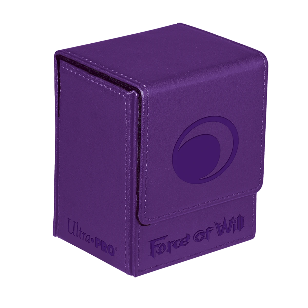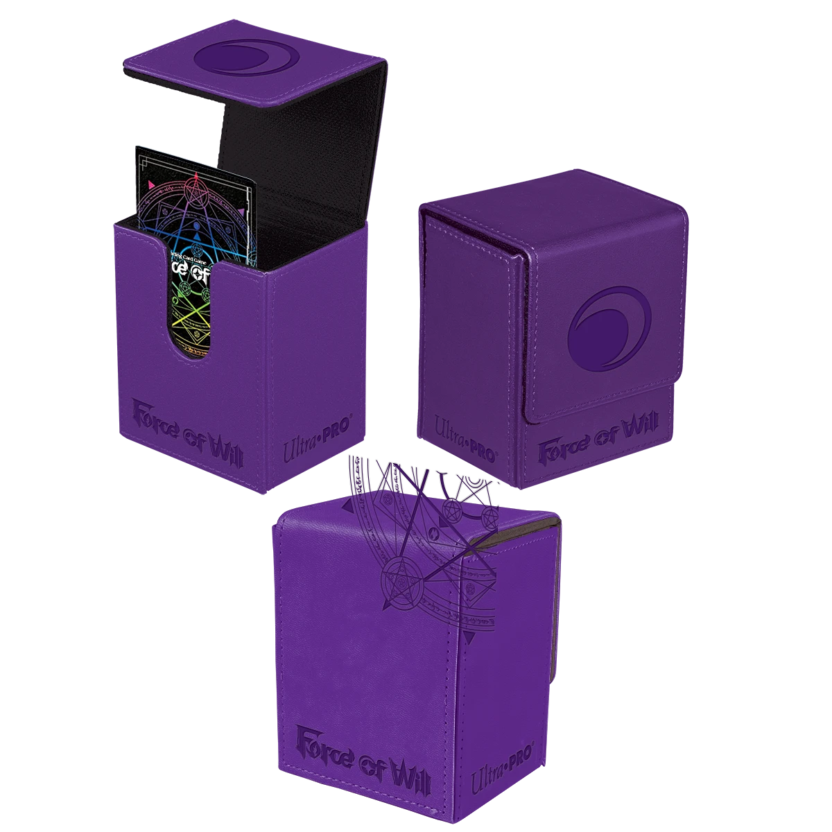 Officially licensed Force of Will Flip Box! Matte Leatherette material with debossed Force of Will element design. The cover flap is secured with a strong magnet closure. This Flip Box is constructed with soft inner liner to protects your valuable gaming cards. Holds up to 100 collectible cards in Ultra PRO Deck Protector sleeves. (Cards and sleeves not included)