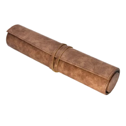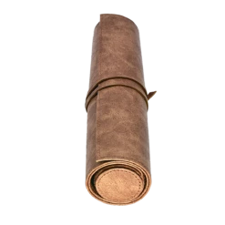 The Dice Scroll offers premium dice storage and functions as a dice rolling mat. Made with a durable leatherette exterior and soft microfiber interior, your favorite dice will be stored safely and your table protected when rolling on this soft roll-out mat. The zippered compartment holds 20+ dice on average. The rolling mat rolls into a scroll around the zippered compartment and is secured shut with a single tie to look like an ancient leather-bound scroll. Great for your next role-playing game, D&D session, or cosplay!