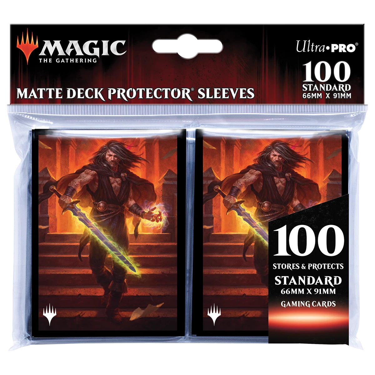 The 100ct Deck Protector® sleeves for Magic: The Gathering feature full-color artwork and are made with our proprietary ChromaFusion Technology™ to prevent peeling. Archival-safe polypropylene materials ensure you can sleeve your cards with confidence. Sized for standard size trading cards measuring 2.5 in. x 3.5 in. The matte finish on the front offers a glare-free, camera ready play experience, while the shiny back brings out the beautiful artwork!