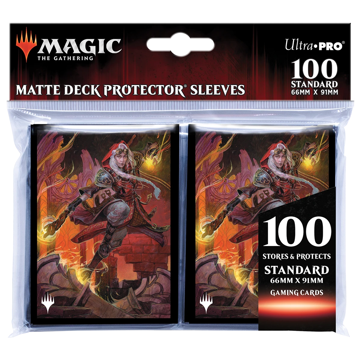 The 100ct Deck Protector® sleeves for Magic: The Gathering feature full-color artwork and are made with our proprietary ChromaFusion Technology™ to prevent peeling. Archival-safe polypropylene materials ensure you can sleeve your cards with confidence. Sized for standard size trading cards measuring 2.5 in. x 3.5 in. The matte finish on the front offers a glare-free, camera ready play experience, while the shiny back brings out the beautiful artwork!