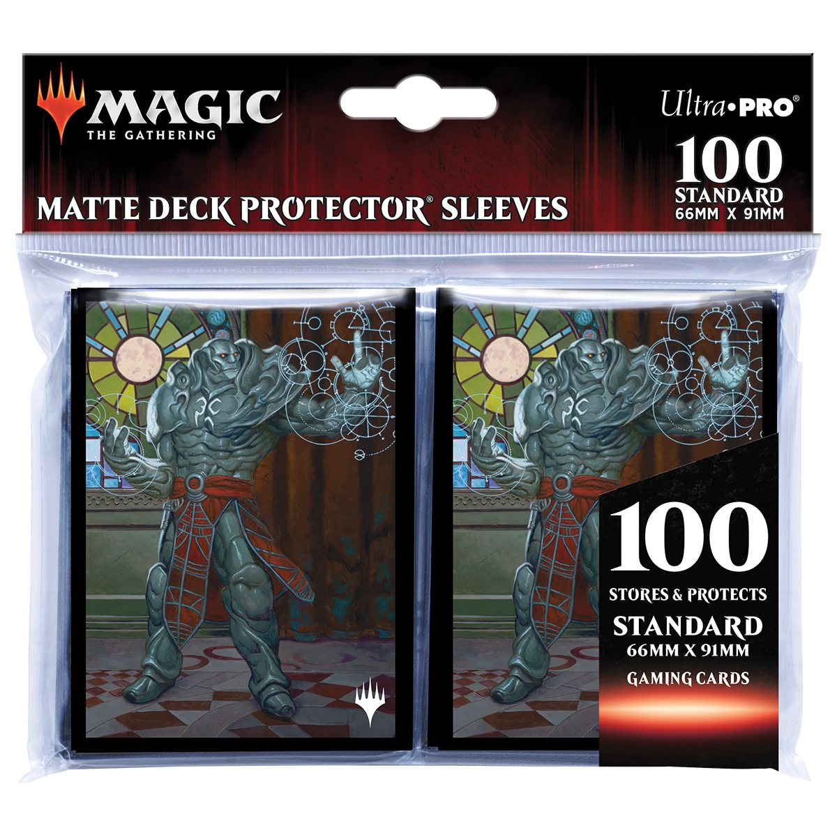 The 100ct Deck Protector® sleeves for Magic: The Gathering feature full-color artwork and are made with our proprietary ChromaFusion Technology™ to prevent peeling. Archival-safe polypropylene materials ensure you can sleeve your cards with confidence. Sized for standard size trading cards measuring 2.5 in. x 3.5 in. The matte finish on the front offers a glare-free, camera ready play experience, while the shiny back brings out the beautiful artwork!