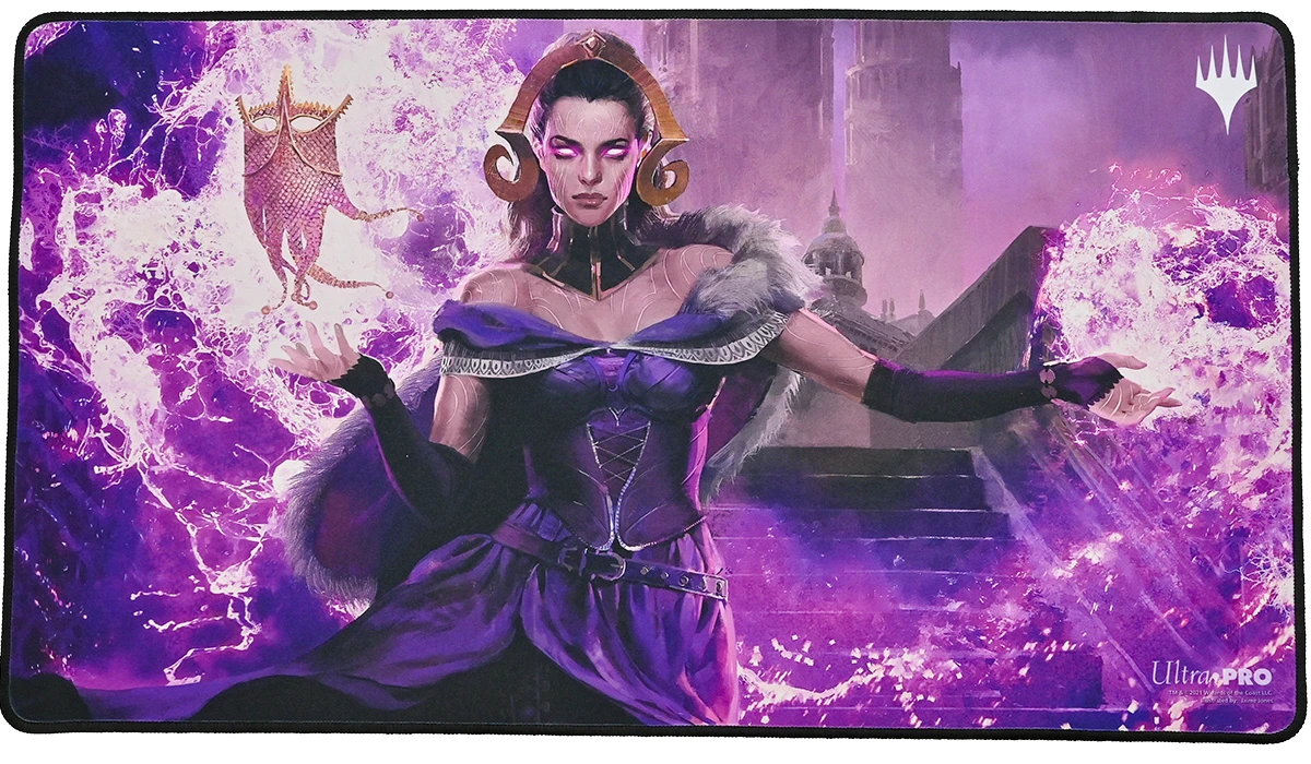 Stitched Playmats feature popular Magic: The Gathering artwork of Liliana, the Last Hope by Jaime Jones. Made with a soft fabric top to reduce damage to cards during play and a non-slip rubber backing to keep the playmat from shifting during use, playmats enhance the gameplay experience. The stitched edges offer an added premium feel. With dimensions of approximately 24 in. x 13.5 in., a playmat also makes an excellent oversize mousepad for home or office.