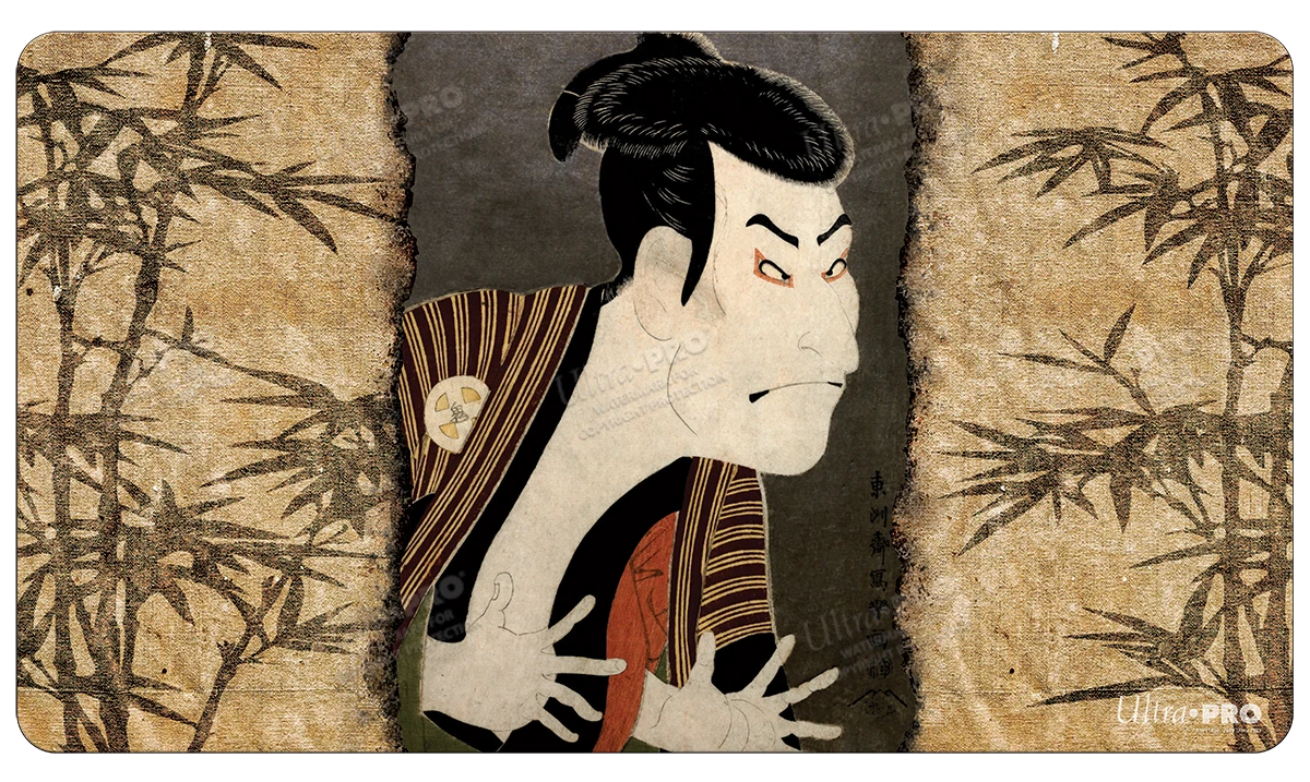The Fine Art The Actor Standard Gaming Playmat by Toshusai Sharaku is made with a premium fabric top to prevent damage to cards during gameplay for tabletop gamers. With dimensions of approximately 24″ X 13-1/2″, this playmat is also the perfect decorative oversized mouse pad for computer and laptop workstations. Non-slip rubber backing lets the playmat lay flat and prevents it from shifting during use.