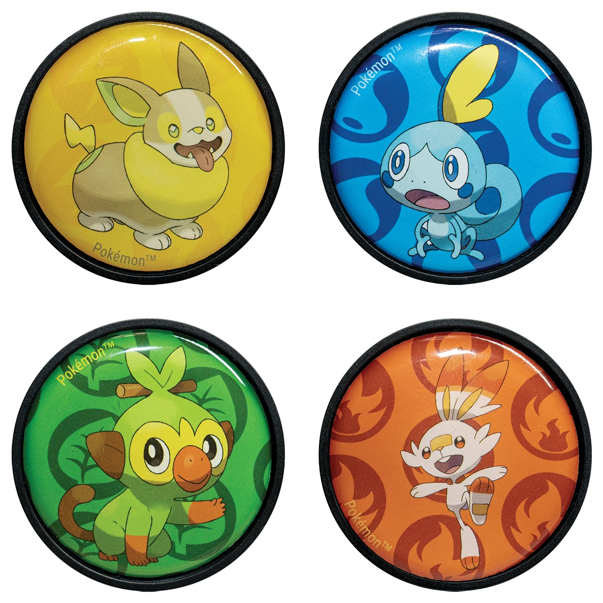 - Comes with four 1.5 in. magnetic badges, featuring Scorbunny, Grookey, Sobble, and Yamper