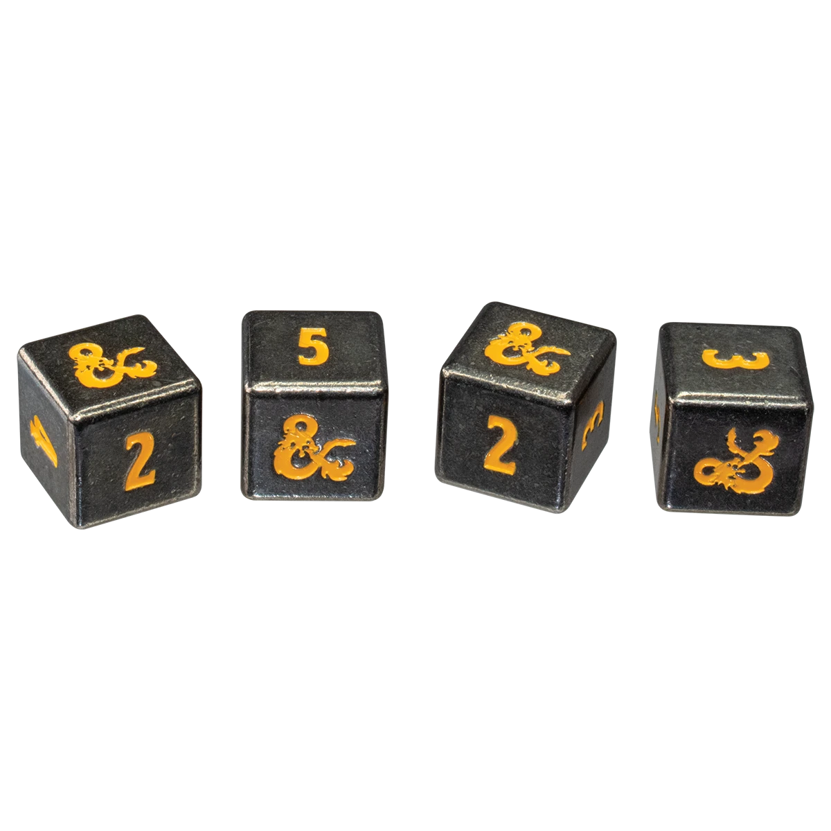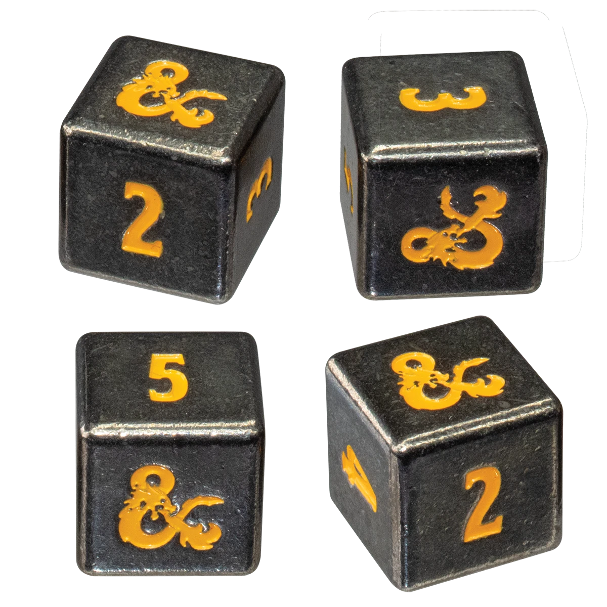 Whether you’re rolling a new character or adventuring with an old one, send a rumble through the realm with Ultra PRO’s D6 Dice Set for Dungeons & Dragons. Made from a heavy zinc alloy material, your dice rolls will intimidate foes and friends alike. The set includes four 6-sided dice featuring the iconic Dungeons & Dragons ampersand logo in place of the number 6.