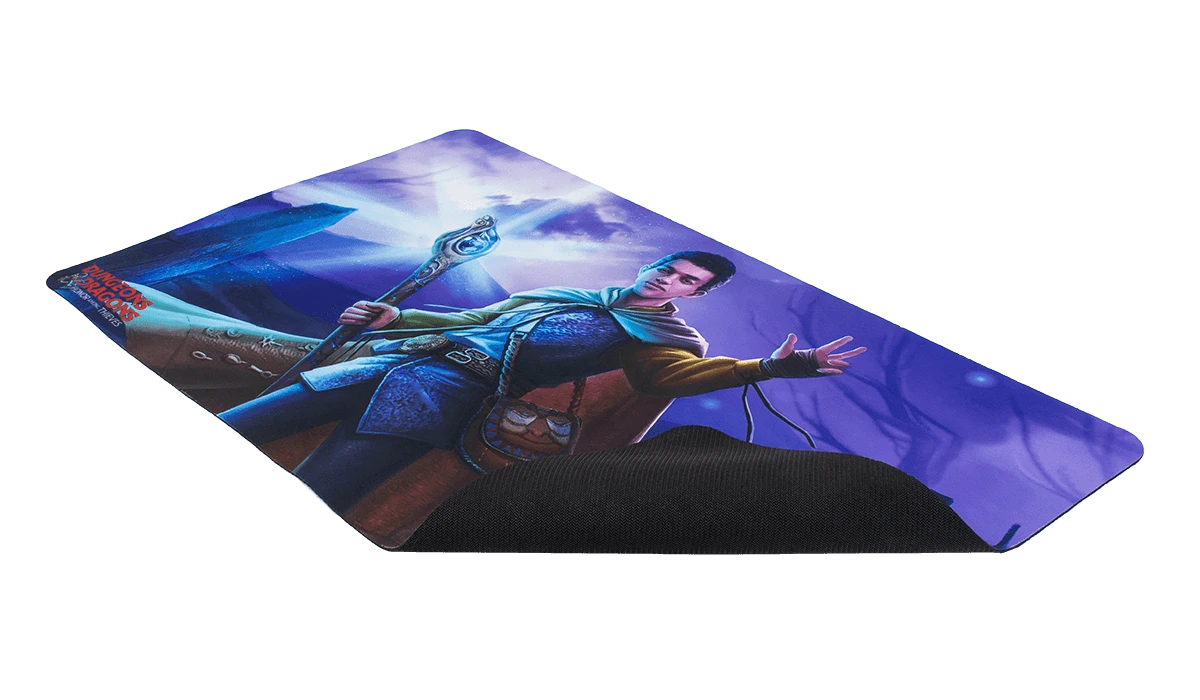 Bring your favorite adventures to the table with Honor Among Thieves Playmats for Dungeons & Dragons. Made with a soft fabric top and rubber backing, not only will your cards, miniatures, or specialty dice be protected, but also the table below when rolling dice. With dimensions of approximately 24 in. x 13.5 in., this playmat is also the perfect decorative oversized mousepad for your home or office. Non-slip rubber backing lets the playmat lay flat and prevents it from shifting during use.