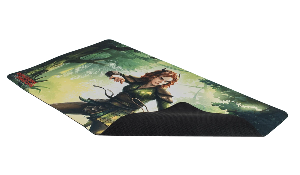 Bring your favorite adventures to the table with Honor Among Thieves Playmats for Dungeons & Dragons. Made with a soft fabric top and rubber backing, not only will your cards, miniatures, or specialty dice be protected, but also the table below when rolling dice. With dimensions of approximately 24 in. x 13.5 in., this playmat is also the perfect decorative oversized mousepad for your home or office. Non-slip rubber backing lets the playmat lay flat and prevents it from shifting during use.