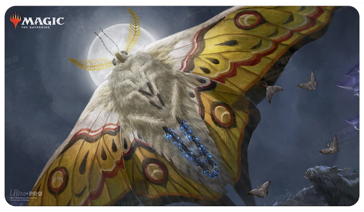 Up your game at your next game night with these official Magic: The Gathering playmats showcasing highly detailed and vibrant artwork of Luminous Broodmoth. Made with a premium fabric top to prevent damage to cards during gameplay for tabletop gamers. With dimensions of approximately 24″ X 13-1/2″, this playmat is also the perfect decorative oversized mouse pad for computer and laptop workstations. Non-slip rubber backing lets the playmat lay flat and prevents it from shifting during use.