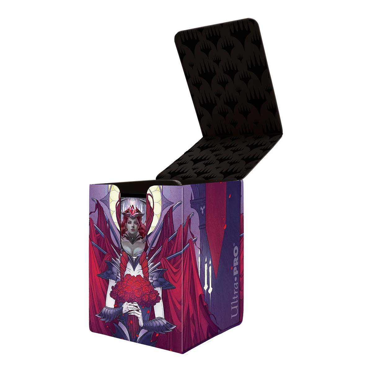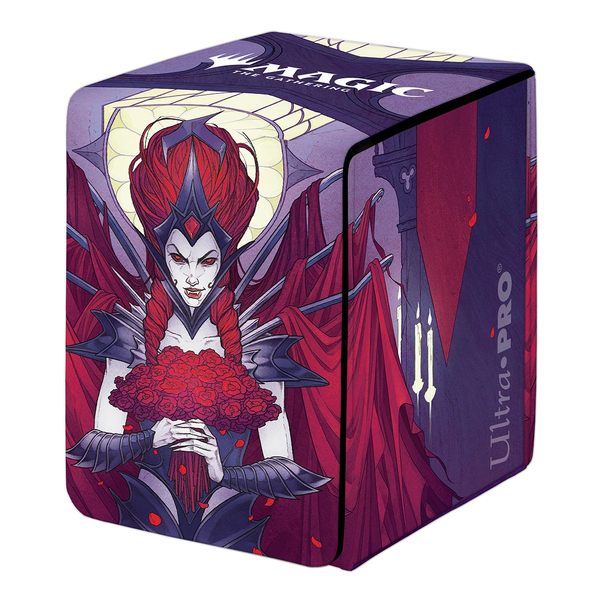 The Alcove Flip Deck Box® for Magic: The Gathering Innistrad Crimson Vow features a vibrant, full-color Set Booster Olivia Key Art on a leatherette finish, strong magnetic closure, and dual thumb notches for easy access to your deck. This deck box holds up to 100 standard size trading cards double-sleeved in Ultra PRO Deck Protector® sleeves.