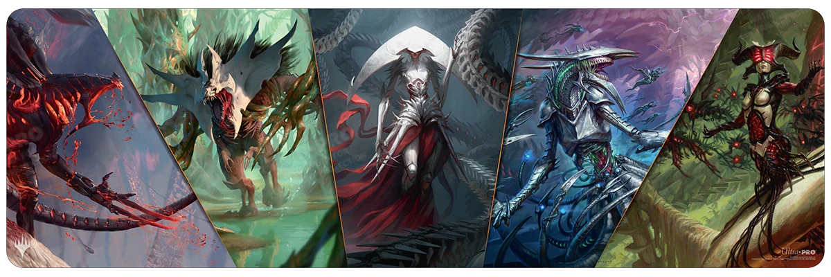 - Features exclusive artwork of the Praetor’s Urabrask, Vorinclex, Elesh Norn, Jin-Gitaxias, Sheoldred by Campbell White – Daarken – Magali Villeneuve – Ekaterina Burmak – Ryan Pancoast