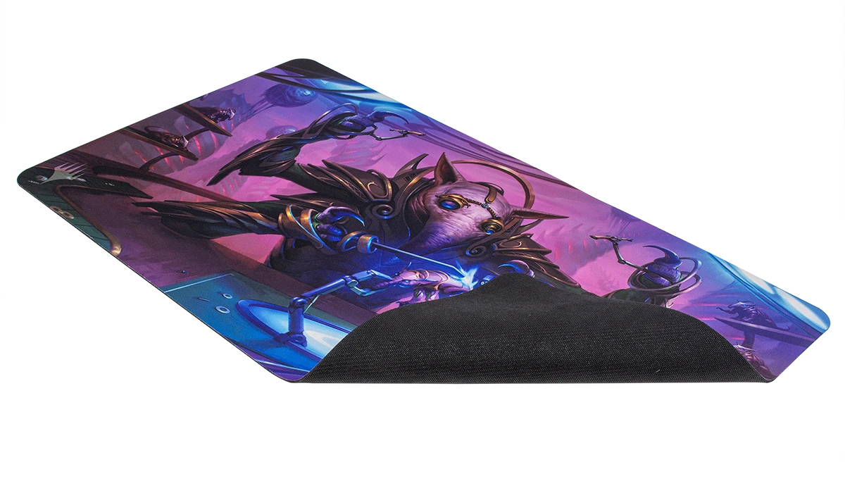 Playmats feature popular Magic: The Gathering artwork. Made with a soft fabric top to reduce damage to cards during play and a non-slip rubber backing to keep the playmat from shifting during use, playmats enhance the gameplay experience. With dimensions of approximately 24 in. x 13.5 in., a playmat also makes an excellent oversize mousepad for home or office.