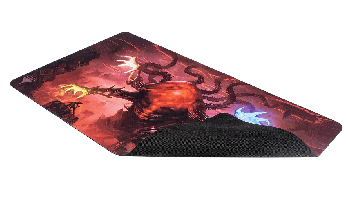 Playmats feature popular Magic: The Gathering artwork. Made with a soft fabric top to reduce damage to cards during play and a non-slip rubber backing to keep the playmat from shifting during use, playmats enhance the gameplay experience. With dimensions of approximately 24 in. x 13.5 in., a playmat also makes an excellent oversize mousepad for home or office.