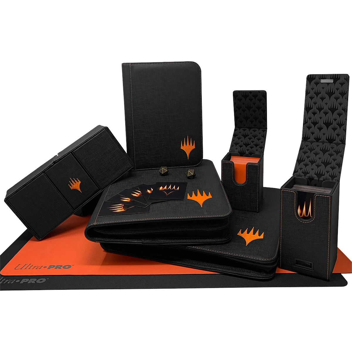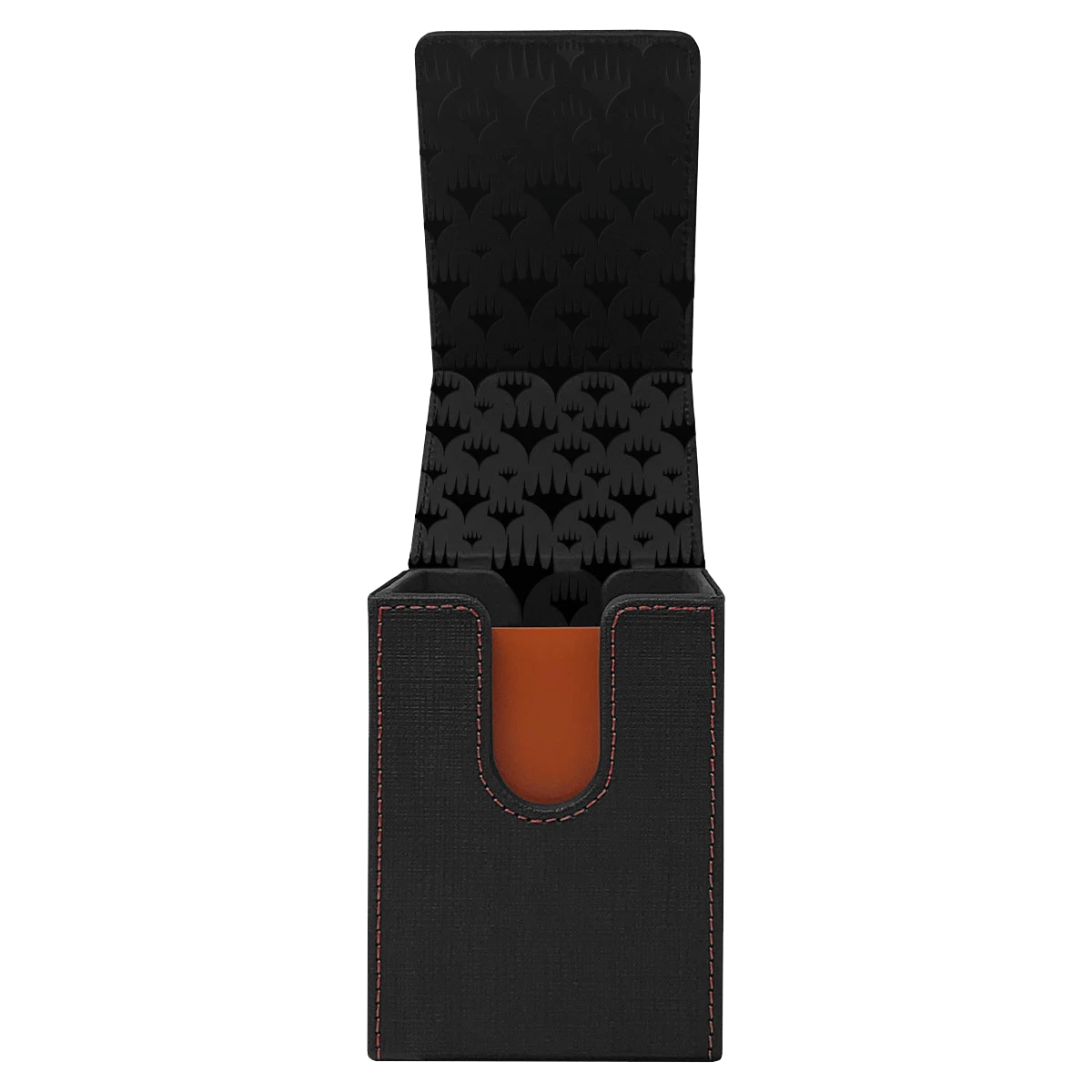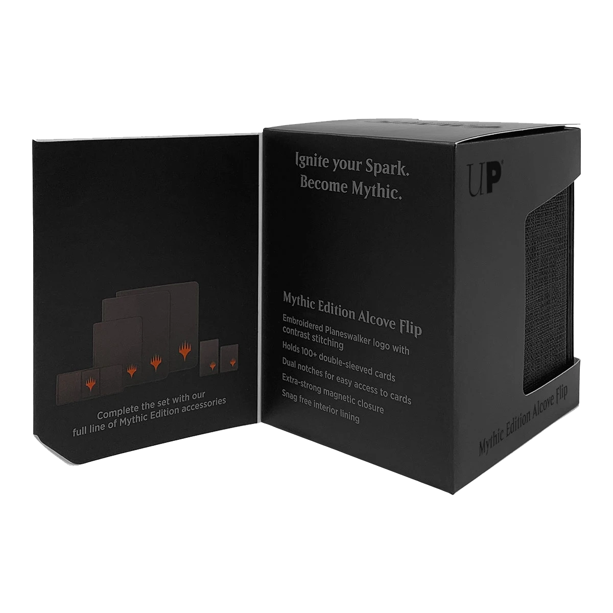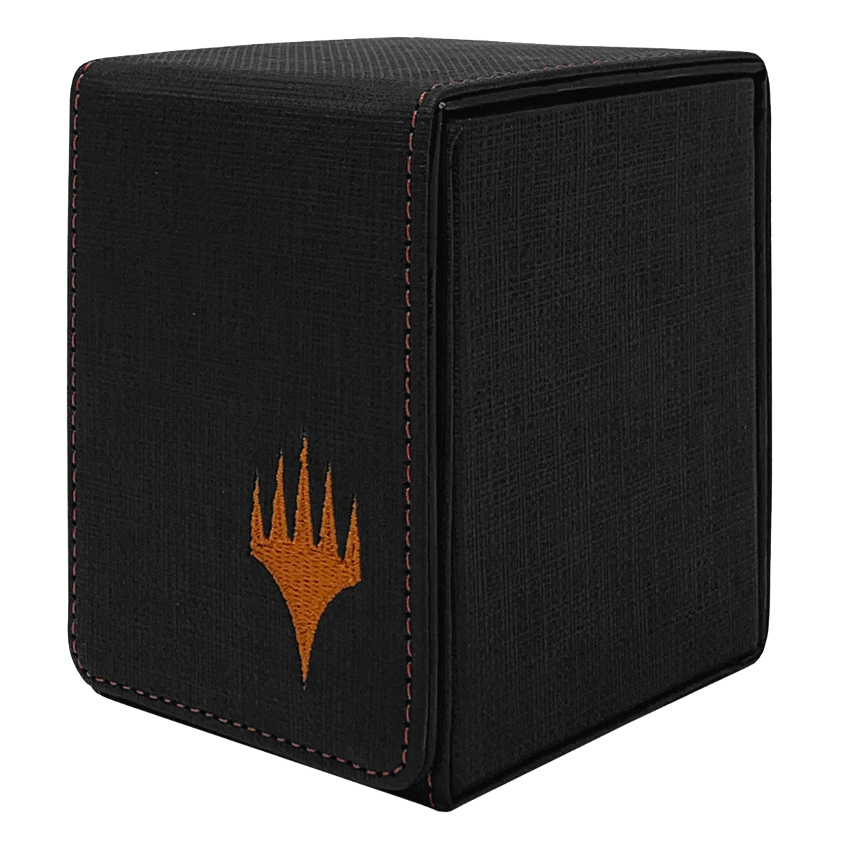 The Mythic Editions are Ultra PRO™’s most premium accessories for Magic: The Gathering. This Alcove Flip Deck Box features a black leatherette material with a mythic orange embroidered Planeswalker symbol and matching stitching. Store and protect up to 100 standard size trading cards double-sleeved in Ultra PRO Deck Protector® sleeves. This deck box is made with durable, high-quality materials and features a strong magnetic closure to securely store your deck, and dual thumb notches for easy access when you are ready to play.