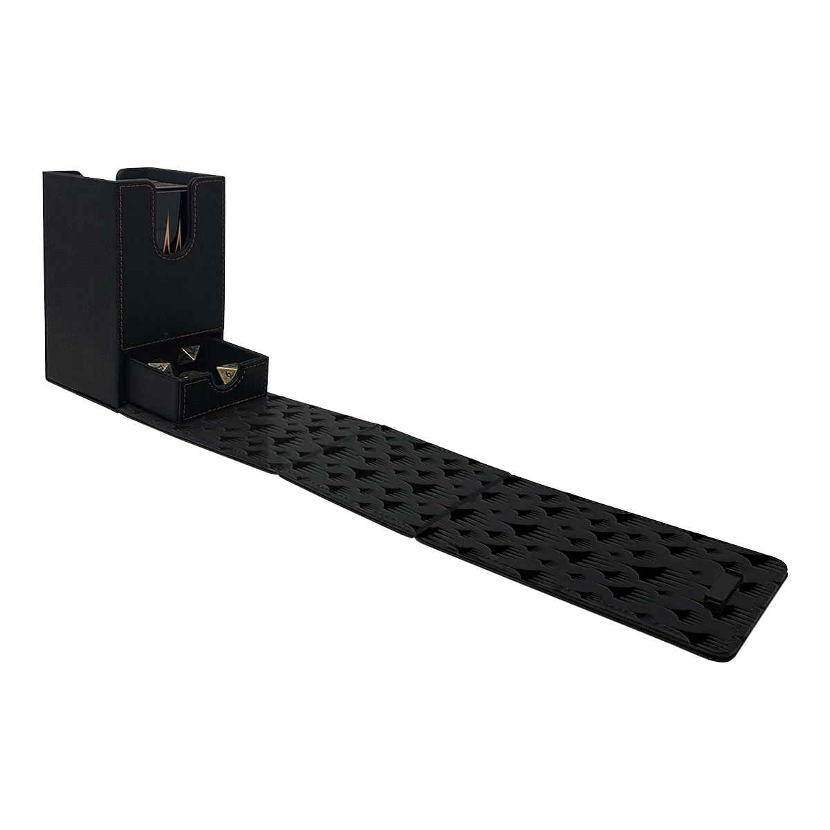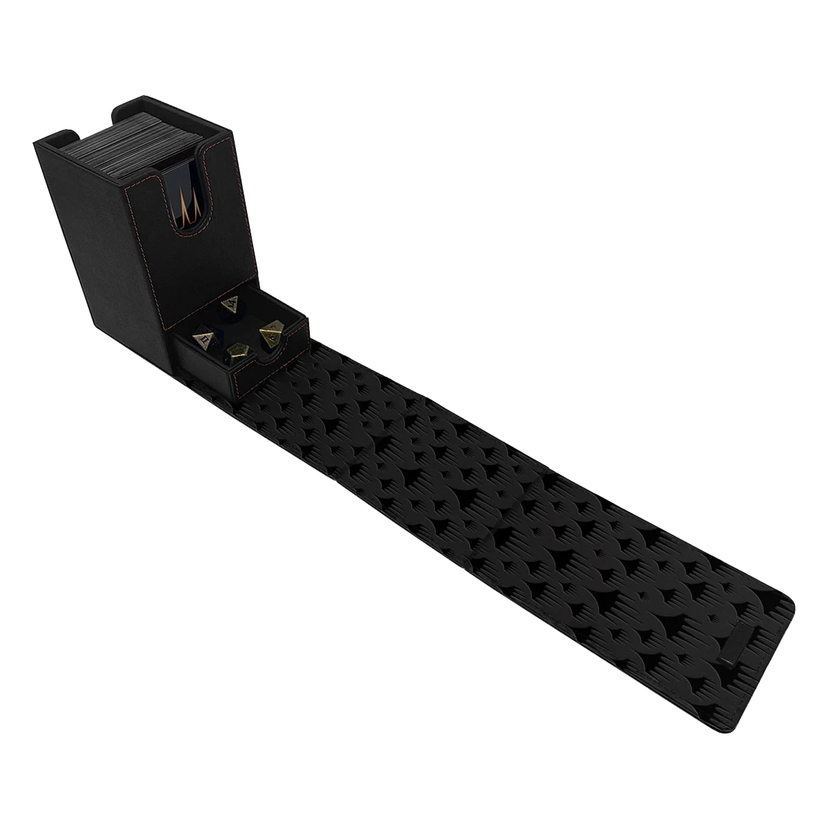 - Holds up to 100 standard size cards double-sleeved and includes a bottom drawer compartment for dice, coins, or other small gaming accessories