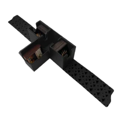 - Two compartments to the left and right of the Alcove Vault can each hold up to 100 double-sleeved standard-sized (2.5″ x 3.5″) trading card game cards.