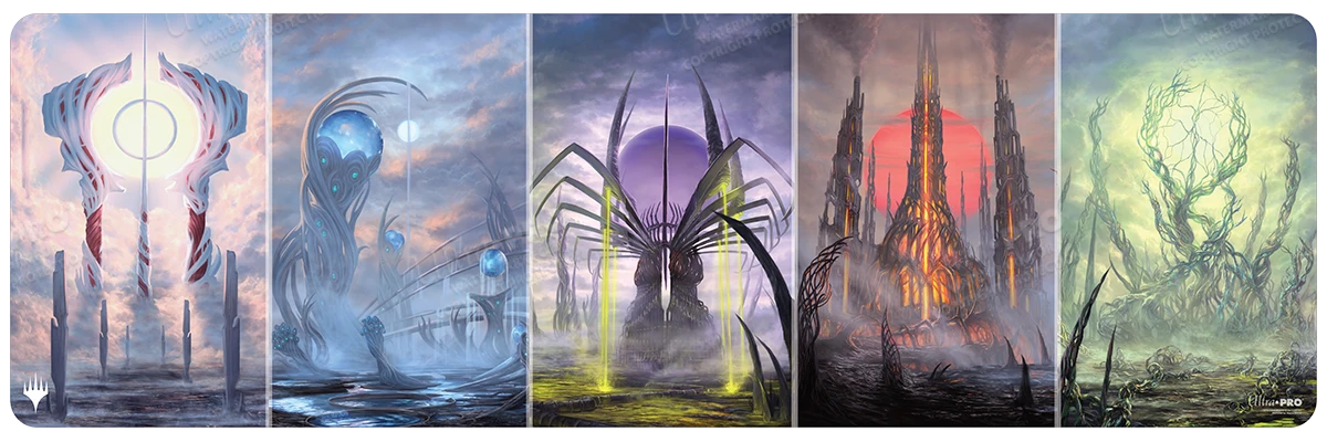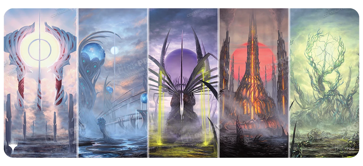 - Features exclusive artwork of Phyrexian Basic Land Tableaux