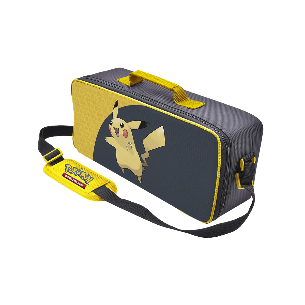 The Pikachu Deluxe Gaming Trove by Ultra PRO features vibrant artwork and maximum utility for every Pokémon Trading Card Game player or collector! The adjustable padded shoulder strap extends to up to 60 in. with a briefcase handle option. The Deluxe Gaming Trove provides customizable storage in a durable fabric shell. Each case includes five modular inserts and is specifically designed to store a playmat and several Ultra PRO Deck Boxes. In addition to the iconic Pokémon artwork, the custom zipper pull tab features the Electric Energy symbol. The Pikachu Deluxe Gaming Trove is the ultimate Pokémon TCG companion.