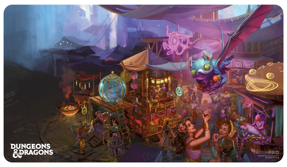 Bring your favorite adventures to the table with the Cover Series Playmats for Dungeons & Dragons. Made with a soft fabric top and rubber backing, not only will your cards, miniatures, or specialty dice be protected, but also the table below when rolling dice. With dimensions of approximately 24 in. x 13.5 in., this playmat is also the perfect decorative oversized mousepad for your home or office. Non-slip rubber backing lets the playmat lay flat and prevents it from shifting during use.