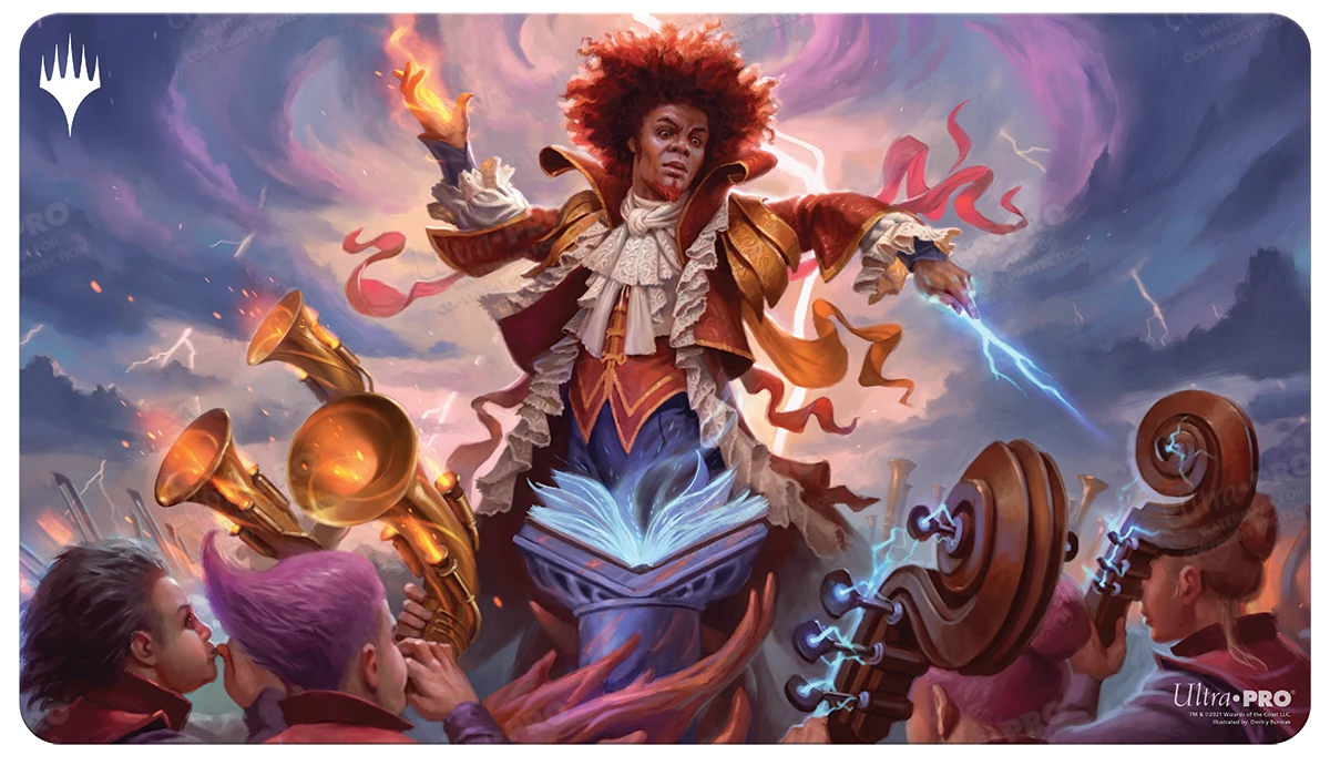 Up your game a beautiful, full-color playmat featuring Zaffai, Thunder Conductor art from Magic: The Gathering. Made with a premium fabric top to prevent damage to cards during gameplay for tabletop gamers. With dimensions of approximately 24″ X 13-1/2″, this playmat is also the perfect decorative oversized mouse pad for computer and laptop workstations. Non-slip rubber backing lets the playmat lay flat and prevents it from shifting during use.
