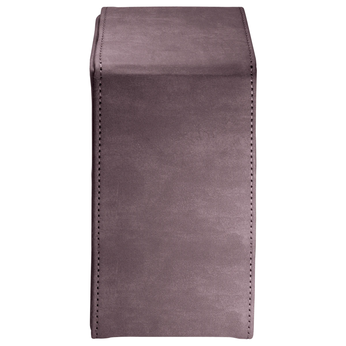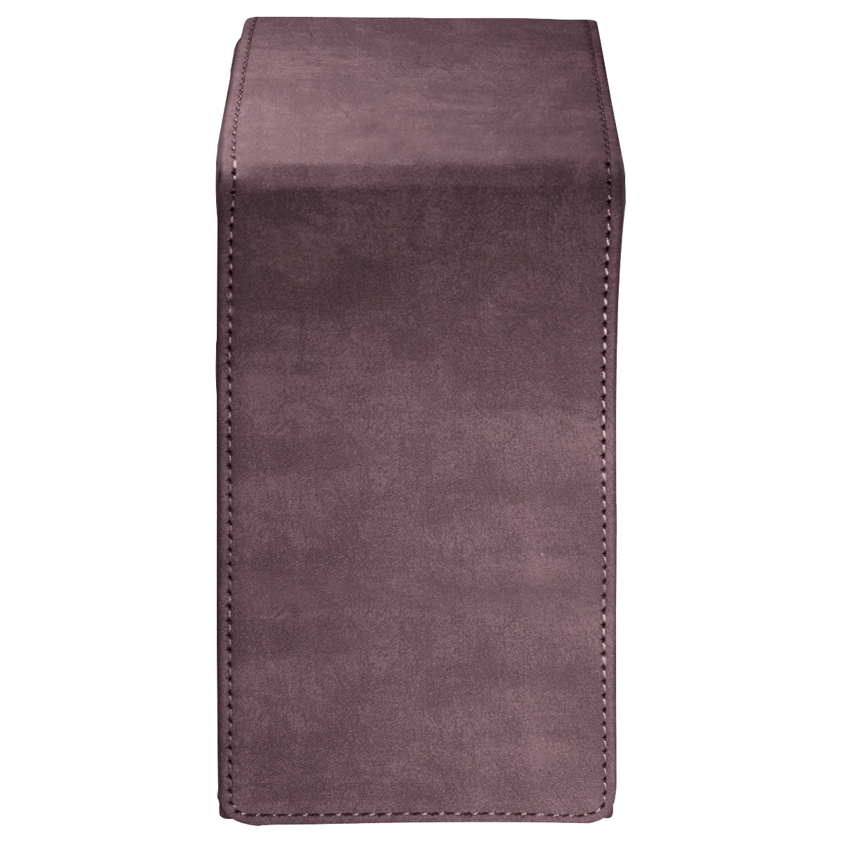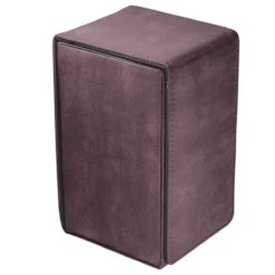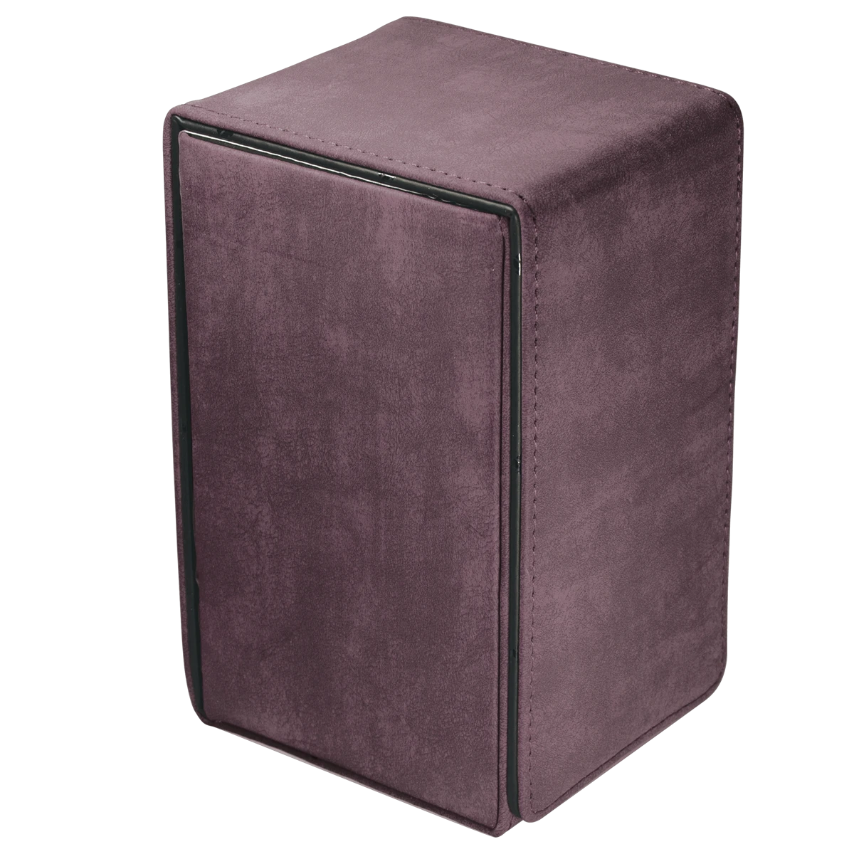 Premium Alcove Tower Flip Deck Box storage cases made with a suede-like material. The Alcove Tower can hold up to 100 double sleeved cards with its lid secured by strong magnetic closures utilizing multiple magnets for extra protection. The lid can be undone on both sides of the box to reveal dual thumb notches for easy access to your deck of cards. The Alcove Tower is a great storage device for organizing and protecting your collection.