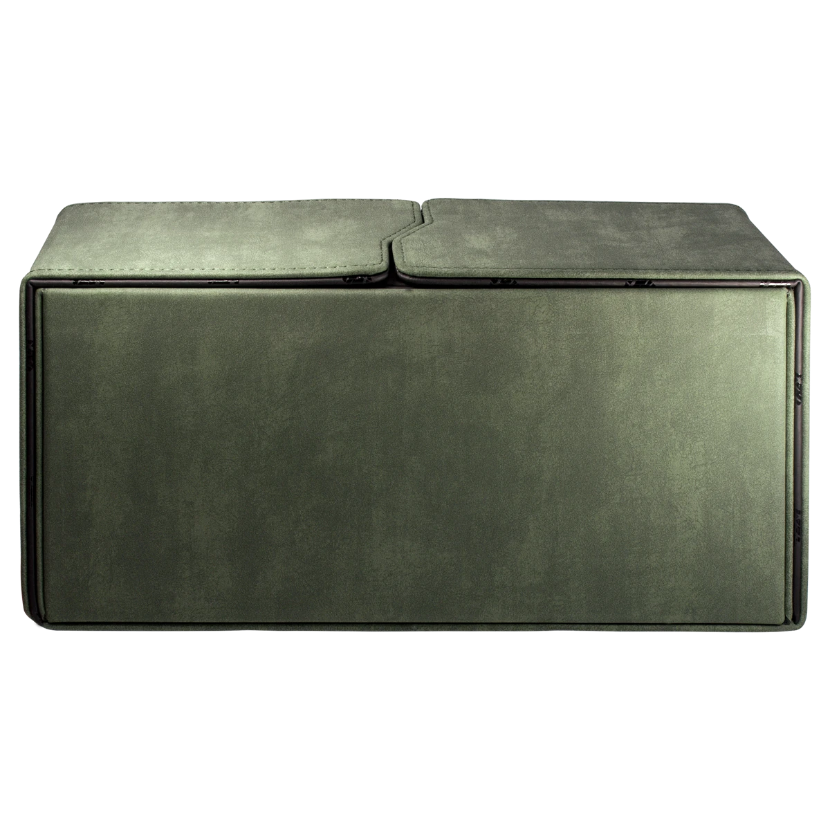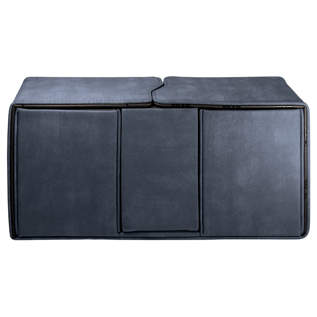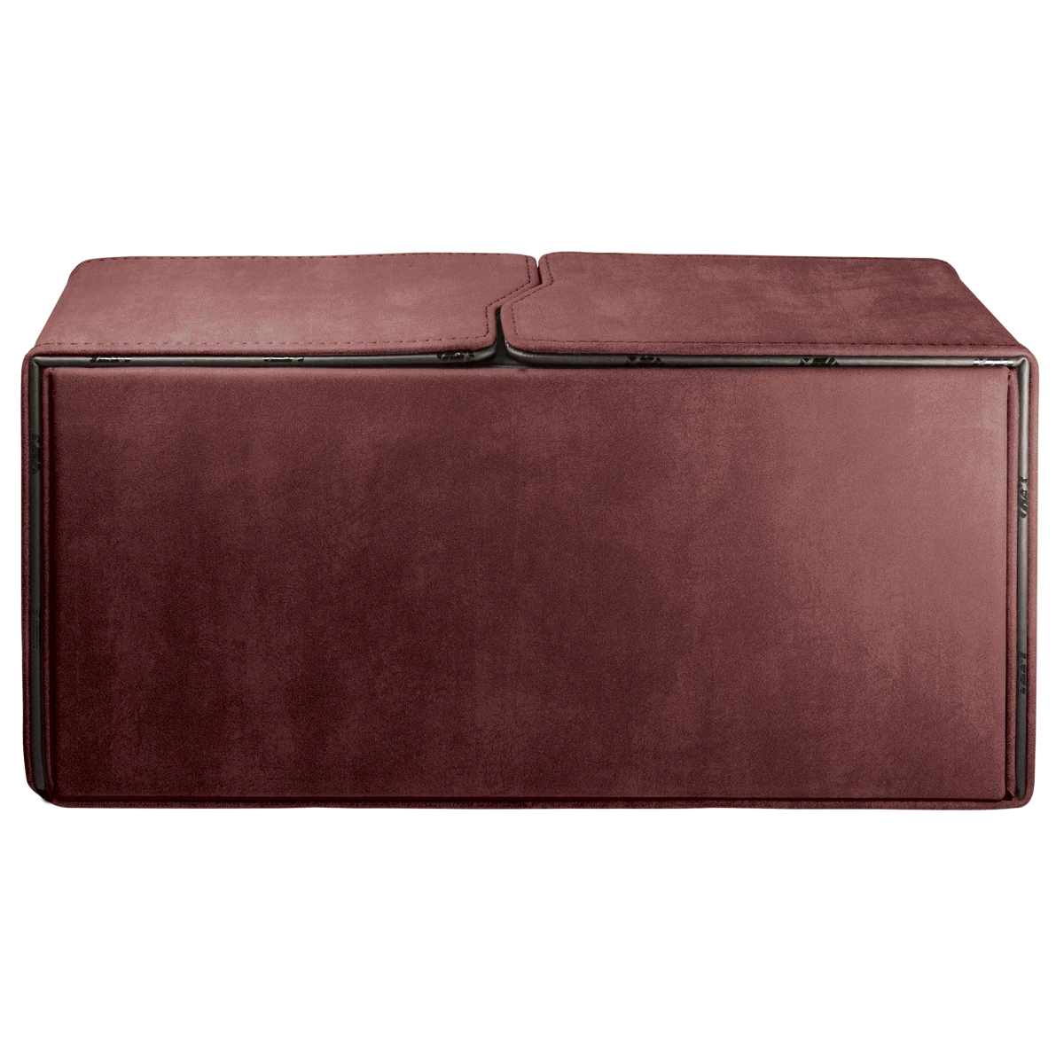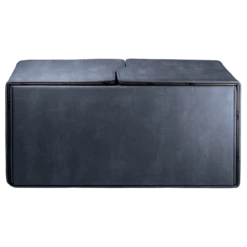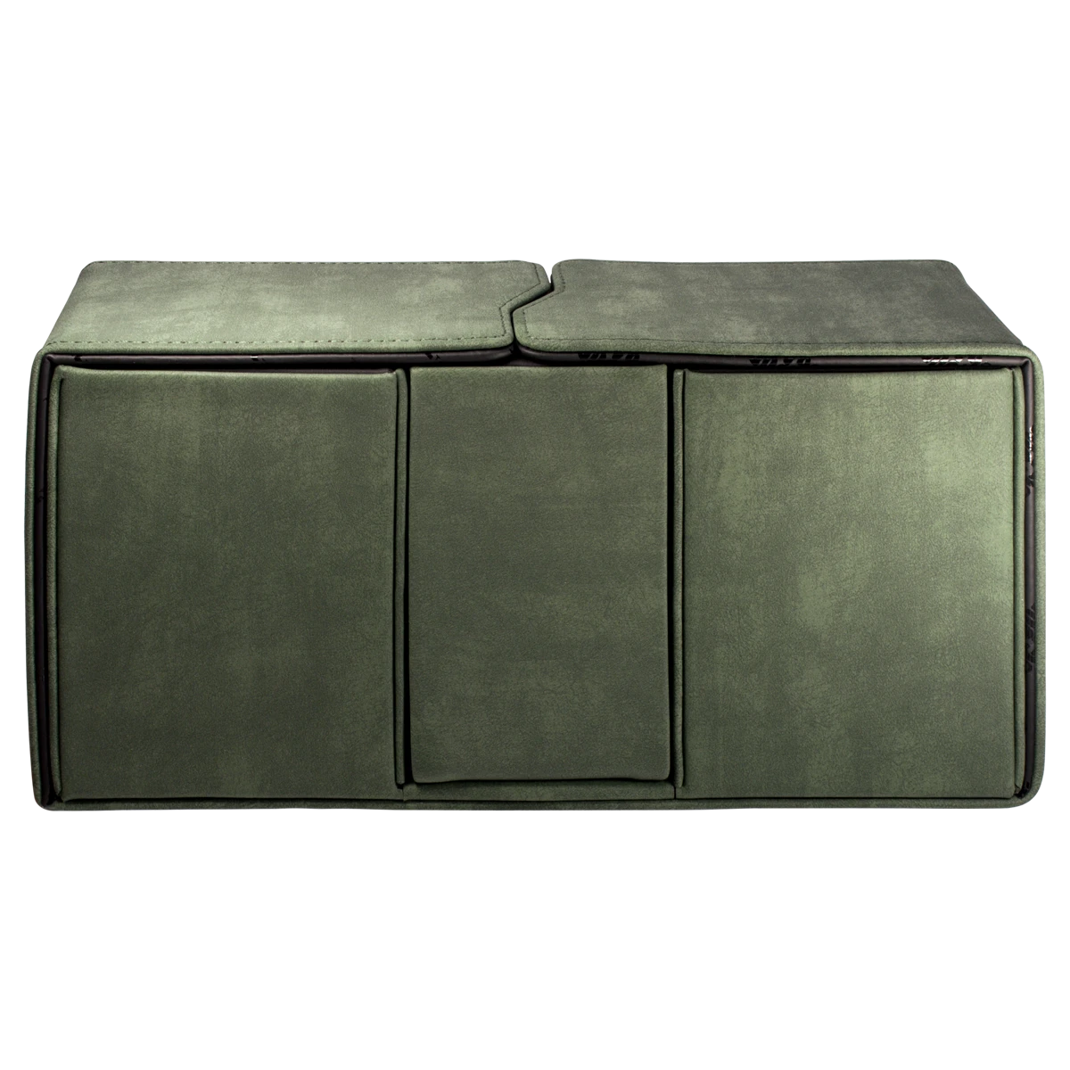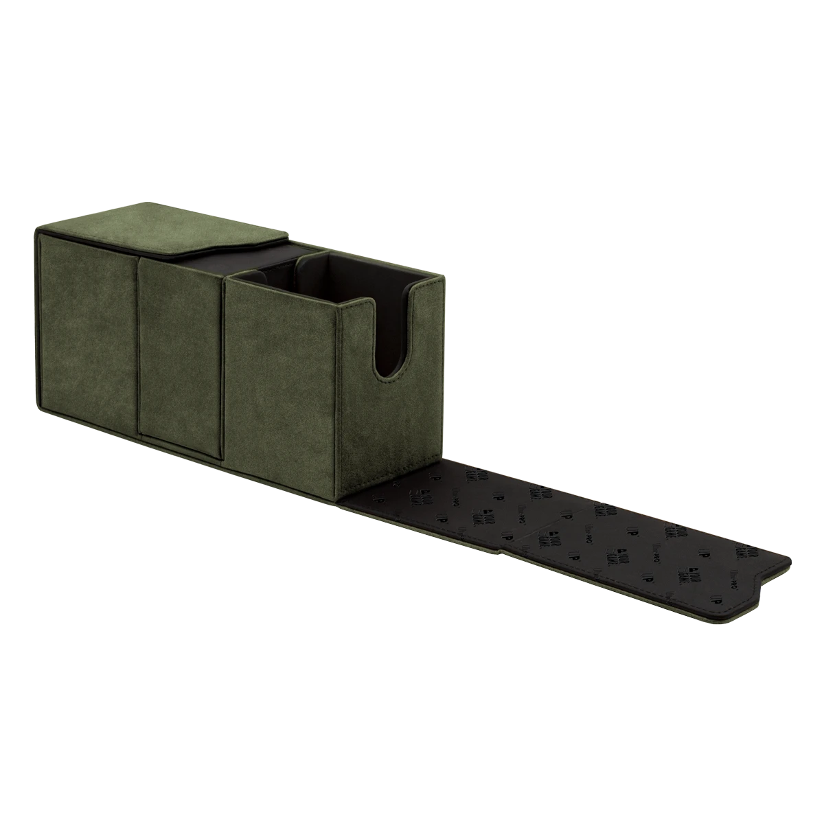 Bring your most powerful decks to the next game night with the Suede Collection Alcove Vault Deck Box! The Alcove Vault’s heavy-duty construction stores and protects up to three separate decks of cards in Deck Protector sleeves. Two compartments to the left and right of the Alcove Vault can each hold up to 100 sleeved standard sized (2.5″ x 3.5″) trading card game cards and feature easy-to-access finger notches to easily remove your decks. The center compartment can hold an additional deck or store dice, tokens, counters, and other small gaming accessories. The Alcove Vault’s lids are held secure by powerful magnets and the entire body is wrapped in premium leatherette material. The Suede line is available in Sapphire Blue, Emerald Green, Ruby Red, and Jet Black.