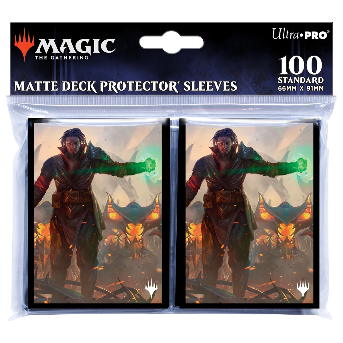 The 100ct Deck Protector® sleeves for Magic: The Gathering feature full-color artwork and are made with our proprietary ChromaFusion Technology™ to prevent peeling. Archival-safe polypropylene materials ensure you can sleeve your cards with confidence. Sized for standard size trading cards measuring 2.5 in. x 3.5 in. The matte finish offers a glare-free, camera ready play experience!