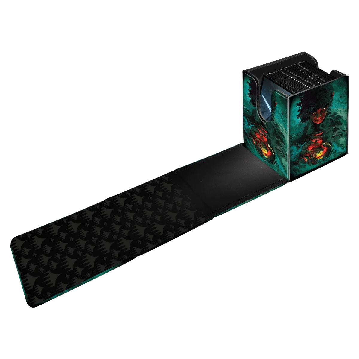 The Alcove Flip Deck Box® for Magic: The Gathering features a vibrant, full-color leatherette finish, strong magnetic closure, and dual thumb notches for easy access to your deck. This Deck Box holds up to 100 standard size trading cards double-sleeved in Ultra PRO Deck Protector® sleeves.
