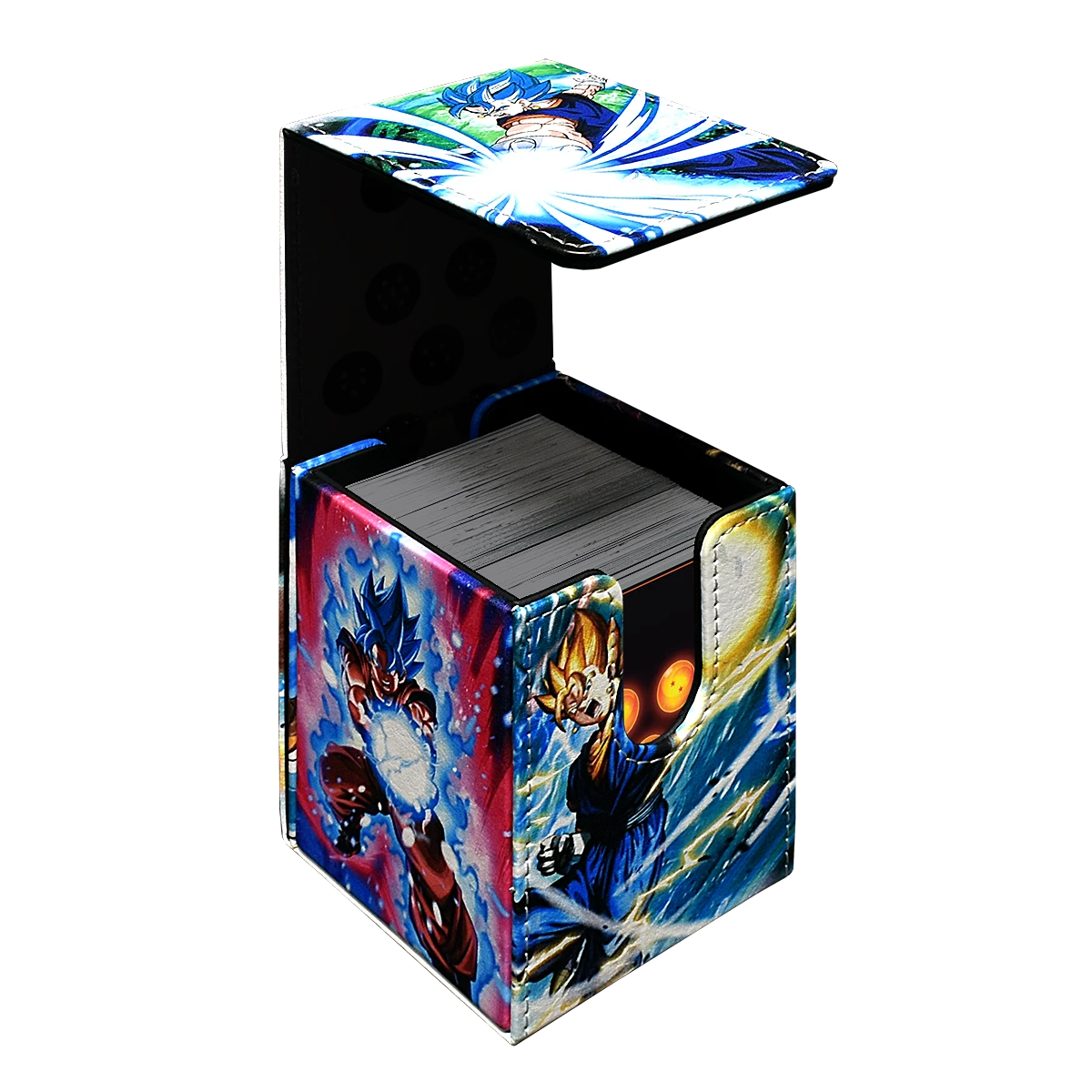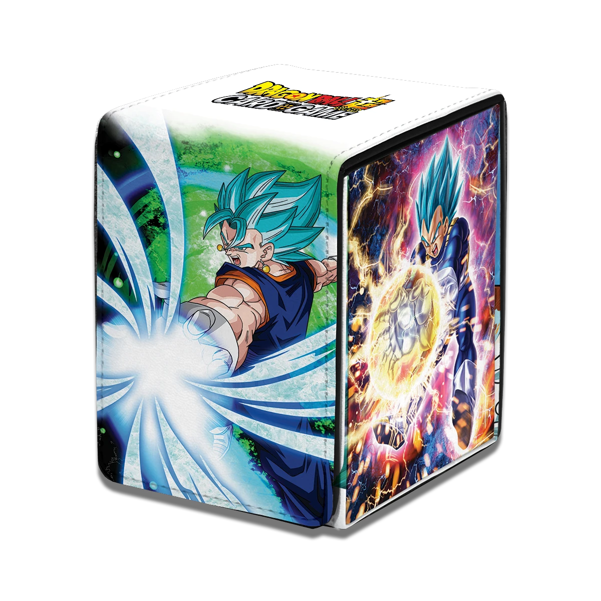 Give your valuable Dragon Ball Super cards the home they deserve with these premium Dragon Ball Super Vegito Alcove Flip Deck Box storage cases made with a matte leatherette finish featuring multiple pieces of art.