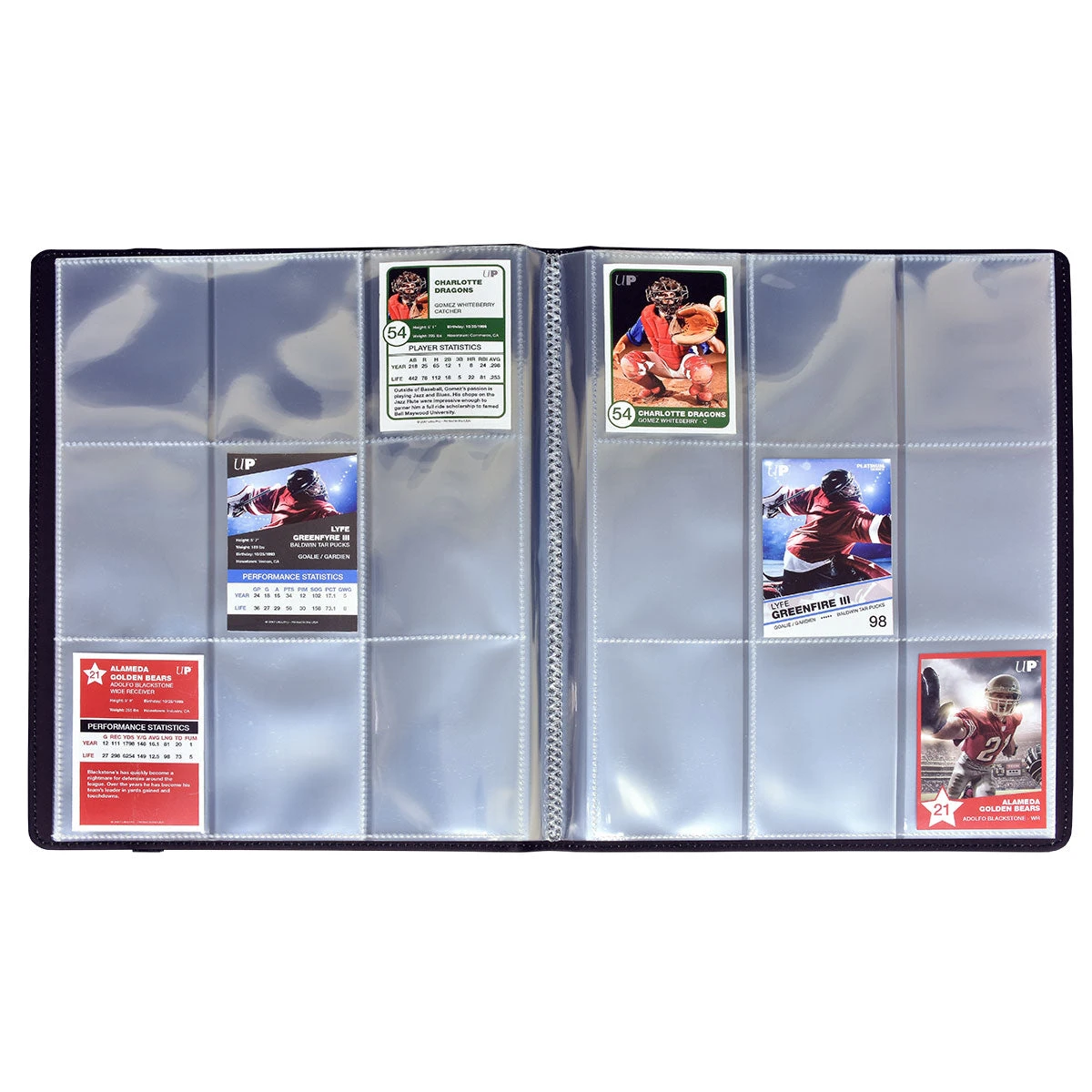 The Window Premium PRO-Binders are ideal for keeping your sports or trading card collection. The Window Premium PRO-Binder features a center window to frame your favorite card. Keep your card collection organized and safe with the clear archival-safe 9-pocket pages, which feature side loading pockets to keep cards clean and in place, and an elastic strap for secure keeping. The album has 20 pages that hold up to 180 standard-size cards allowing you to easily view the front and back of your cards. (cards not included)